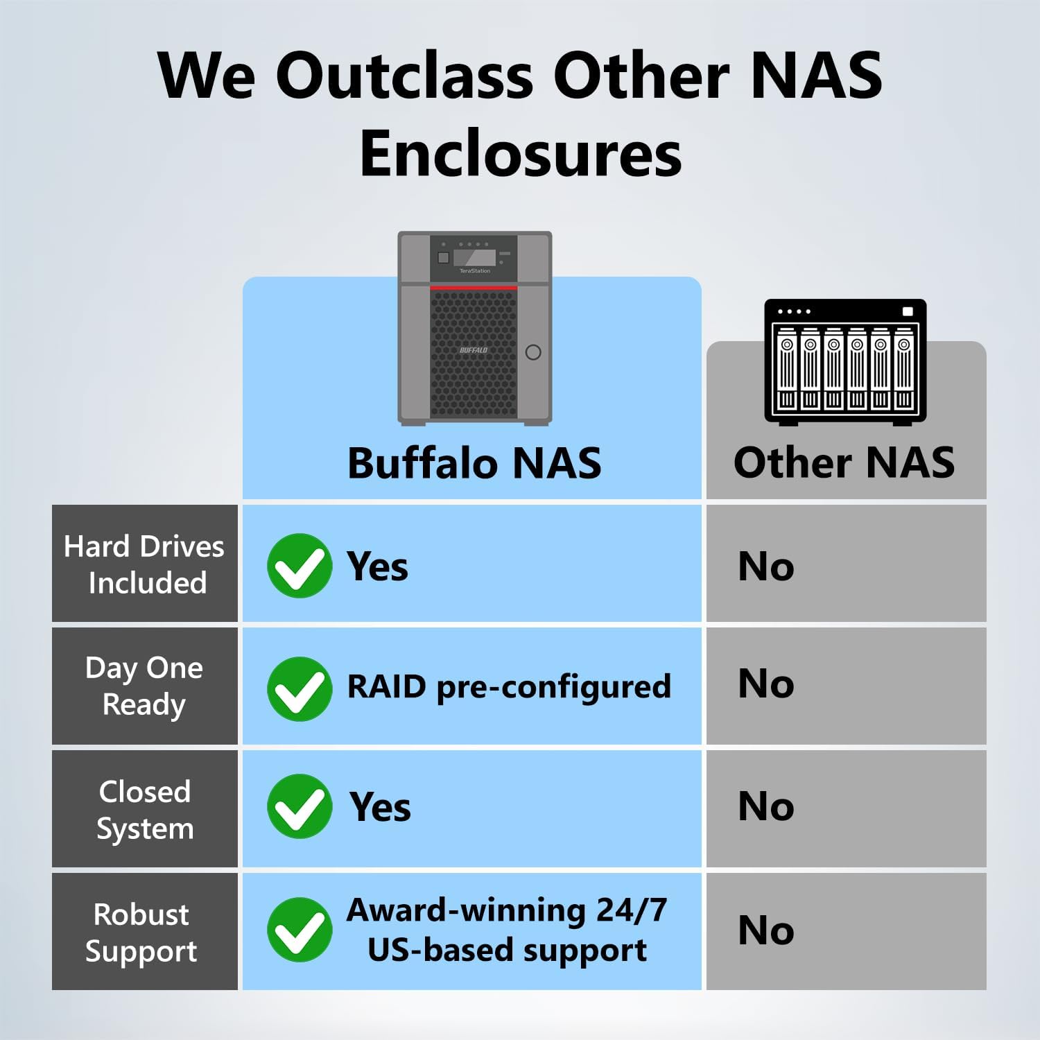 Buffalo provides Peace of Mind with the industry’s #1 support. Our award-winning, US-based Live Phone Support is available 24/7.