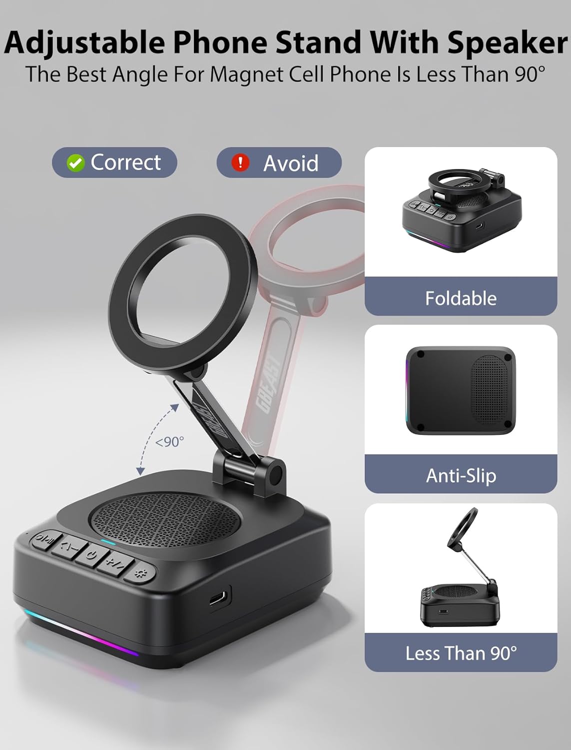 【Bluetooth Speaker & Phone Stand 2 IN 1 】Phone Holder Speaker Device Combines Bluetooth Speaker And Stable Phone Holder For Ultimate Convenience. Enjoy Rich, Clear Sound For Music, Videos And Hands‑Free Calls, While Securely Holding Your Phone At The Perfect Viewing Angle.With A Built‑In Microphone For Crystal‑Clear Calls, It Frees Your Hands To Enhance Productivity And Entertainment. A Practical And Versatile Gadget For Daily Use And Gifting. ⚠️ Note: This Device Cannot Charge Phones