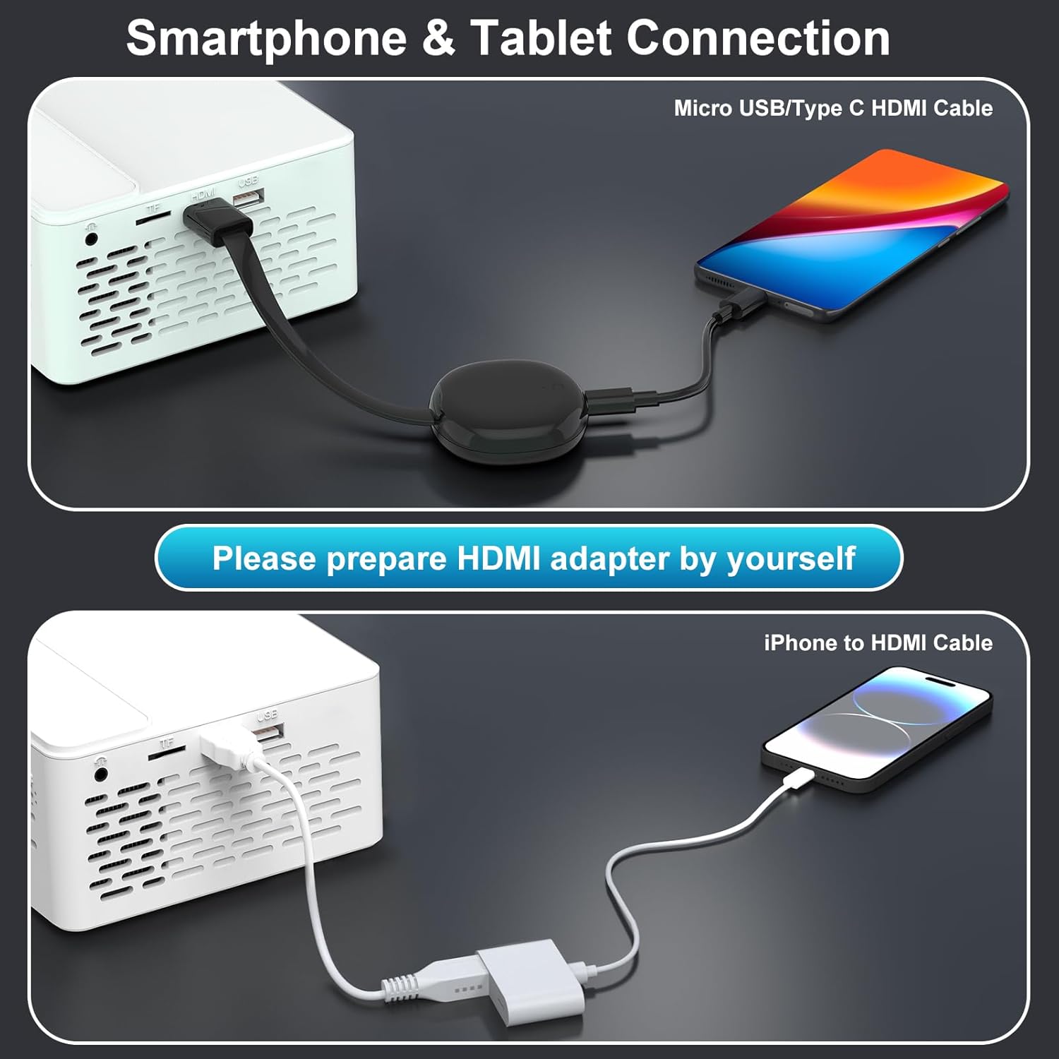 【50%–100% Zoom Flexibility—Perfect for Small Spaces】No more worrying about room size. With an intuitive 50%–100% zoom function, you can easily adjust the image size to fit your wall or screen without moving the projector. Whether you’re setting up in a cozy apartment, a small bedroom, or a compact RV, this portable projector delivers a big-screen experience exactly where you need it. Projection is no longer limited to large spaces—enjoy immersive viewing in any corner of your home.