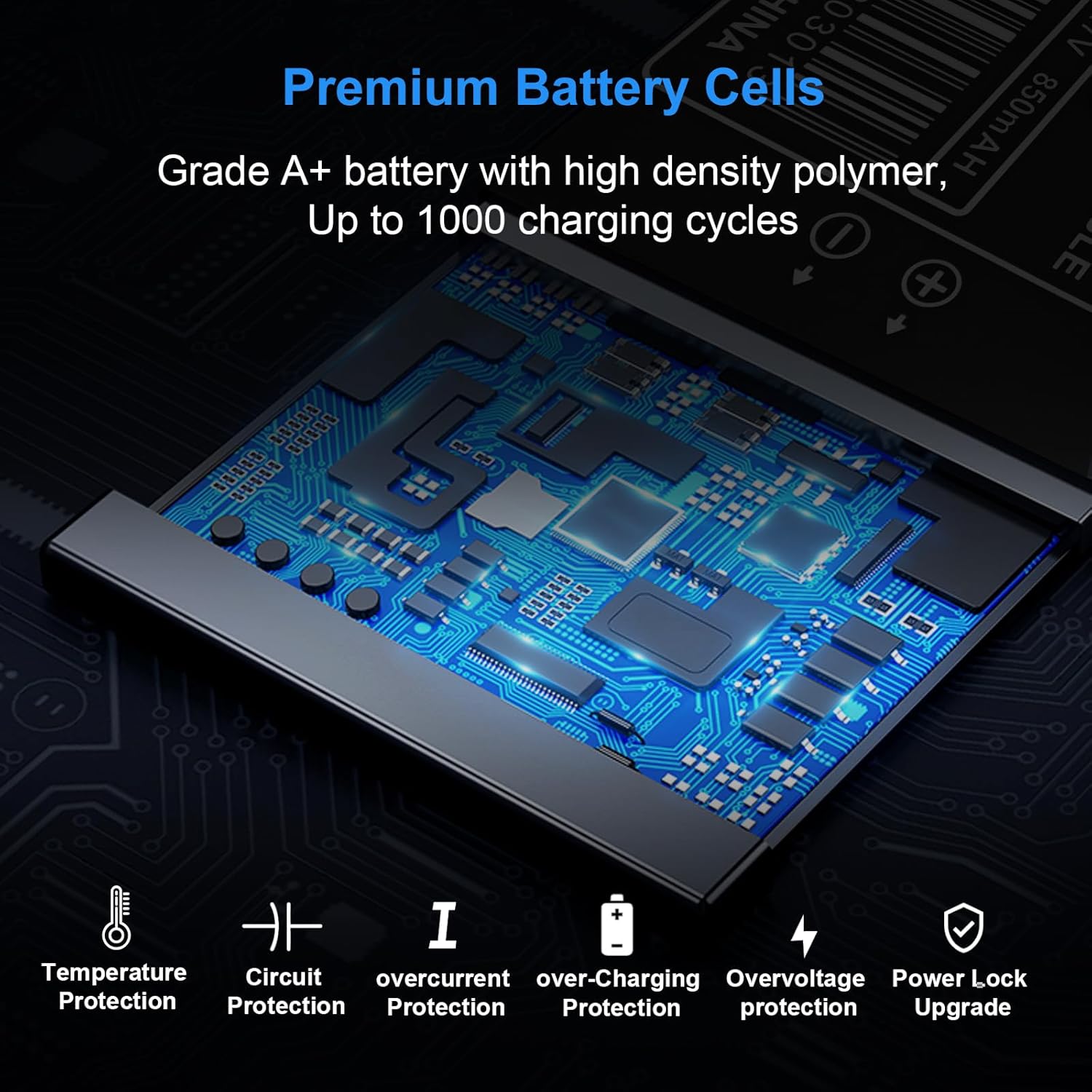 Battery Specifications: Premium 0-cycle Battery: Capacity:2000mAh, Voltage:3.7V, 7.4Wh, Battery type: Li-ion Battery.